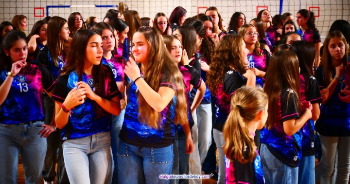 El club femenino de voleibol ha llevado a cabo el acto de presentación oficial de los seis equipos que tiene en competición esta temporada 2025/26 y de las escuelas de El Algar, La Unión y Los Belones.