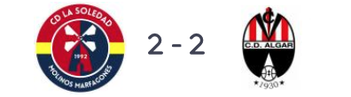 Al CD Algar se le escapa la victoria al recibir un gol en el minuto 97 y sólo puede sumar un punto en el feudo del penúltimo clasificado de segunda autonómica, CD La Soledad de Molinos Marfagones. Arbitró Iván Martínez Ramírez.