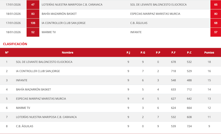 El CD Los Urrutias pierde en su visita al Jesuitinas Murcia (77-51), con lo que ve frenado el buen arreón de resultados que tuvo, y el CB Sierramar pierde la tercera plaza de la clasificación de segunda división de baloncesto al caer en casa ante Costera Sur (63-73).