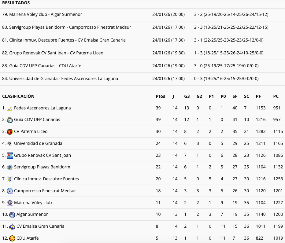 El segundo set fue de alternativas hasta el empate a 14 puntos, momento en que tomó el mando el club de El Algar hasta el final. Después, llegó un tercero con poca historia, pues enseguida puso puntos por medio la escuadra de Riganti y se acabó ganando con mucha autoridad, cerrándolo cuatro saques consecutivos con puntos de Nieves López.
