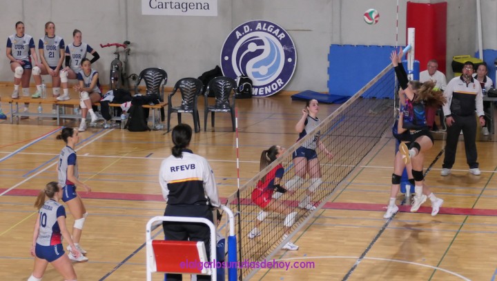 El equipo algareño de la Supeliga Femenina 2 de voleibol paga con una derrota en el Palacio de Deportes de Cartagena, donde no gana desde el 18 de octubre, un flojo partido frente al Universidad de Granada y sigue muy cerca de los puestos de descenso, con lo que el partido de este domingo ante Atarfe cobra aún más importancia. Debutó Isaieva Kseniia y resultó lesionada la líbero titular Belén Cabrera. El artículo incluye vídeo del partido