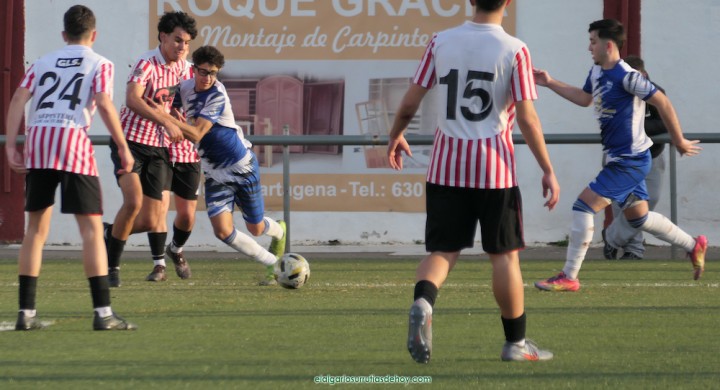 Partido de la jornada 18 de la Liga Autonómica juvenil de la Región de Murcia disputado en el campo Sánchez Luengo de El Algar (Cartagena) ante un centenar de espectadores.