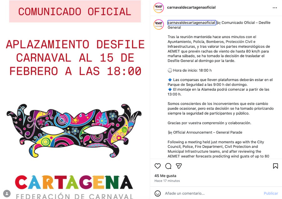 Con permiso del clima, el deporte es el principal protagonista con los partidos de fútbol, baloncesto y voleibol de competiciones regionales de base, además de que Palomeque iniciará una nueva etapa como entrenador del CD Algar en el campo de un Alhama mejor clasificado. Por su parte, AD Algar Surmenor recibe a la escuadra canaria de Guía CDV, líder de la Superliga Femenina 2 y en el deporte de la canasta, CD Los Urrutias y CB Sierramar juegan en casa. Al margen de deporte está el teatro de esta noche en el Apolo, pues el desfile del carnaval de Cartagena, con presencia de los grupos algareños de 'Hondonada' y 'MarDance', ha sido cancelado para la tarde del sábado y se traslada al domingo a las 18 horas.