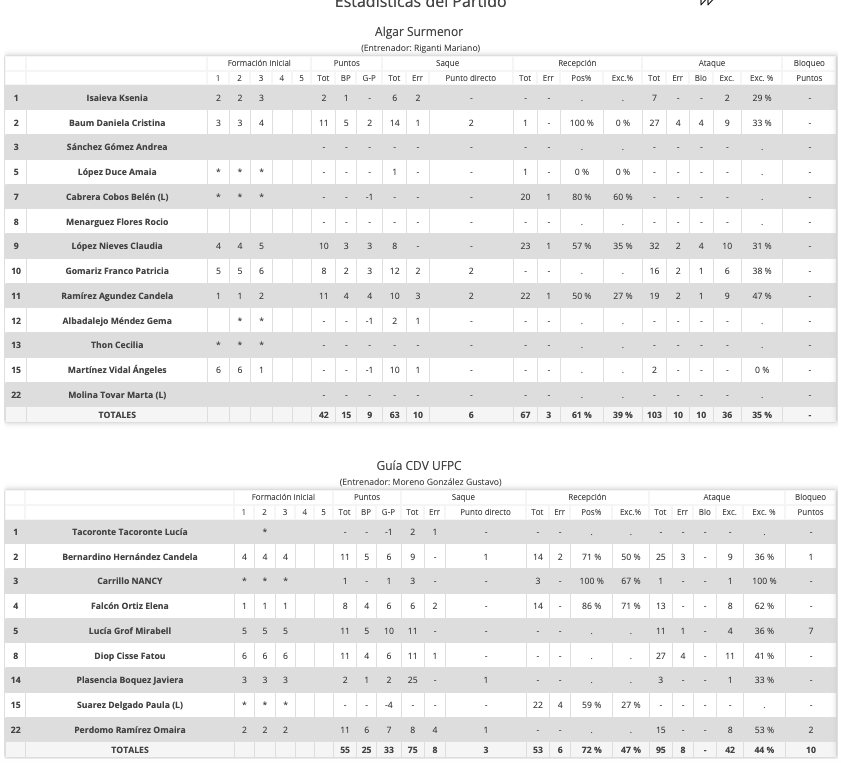 - MARCADOR DE CADA SET. 25-27, 14-25 y 22-25.