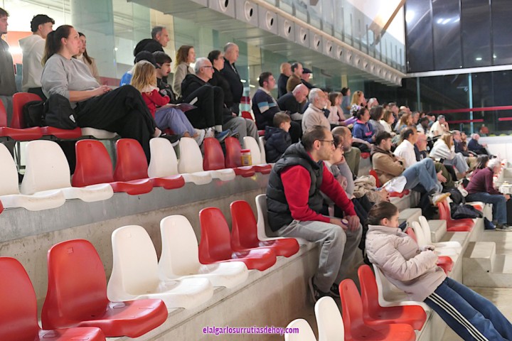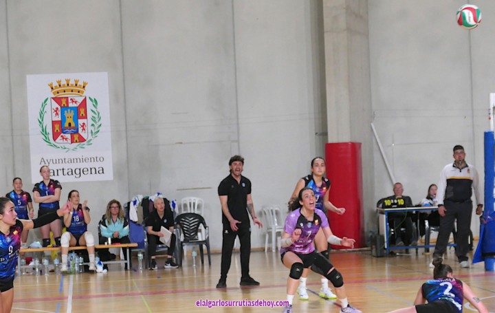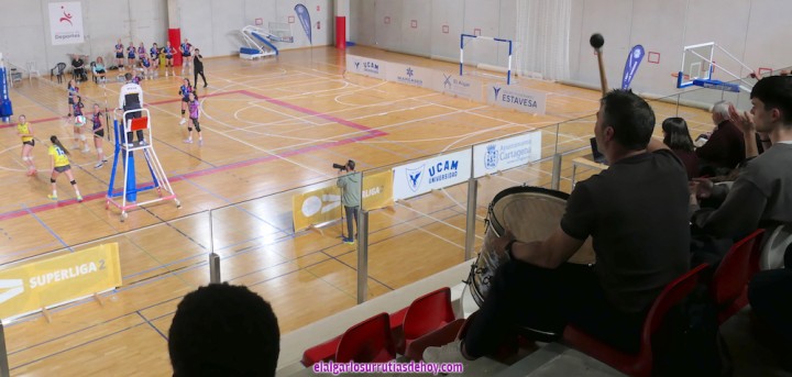 Partido de la jornada 19 del grupo C de la Superliga Femenina 2 de voleibol disputado en la pista auxiliar del Palacio de Deportes de Cartagena ante más de media grada ocupada por espectadores.