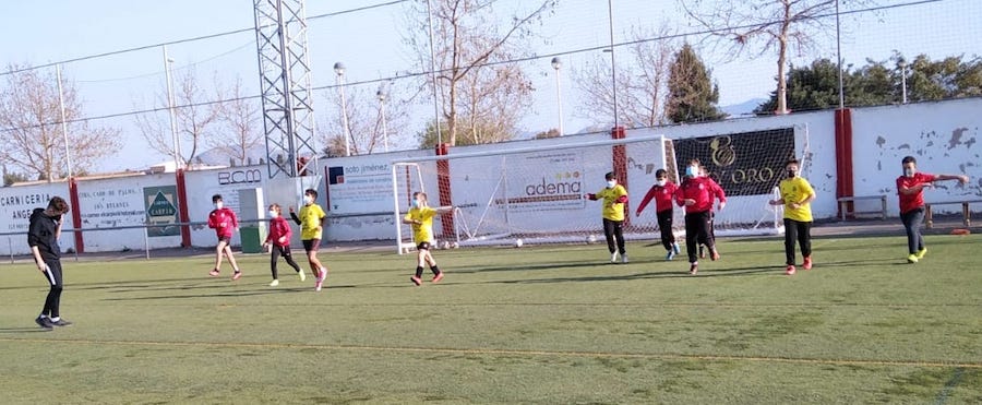 El Ayuntamiento, tras el descenso de la incidencia de contagios de coronavirus en el municipio, ha autorizado esta semana la reapertura de las instalaciones deportivas, con lo que los chavales pueden volver a practicar sus ejercicios favoritos, como se observa en la imagen captada en el campo de fútbol de El Algar.
