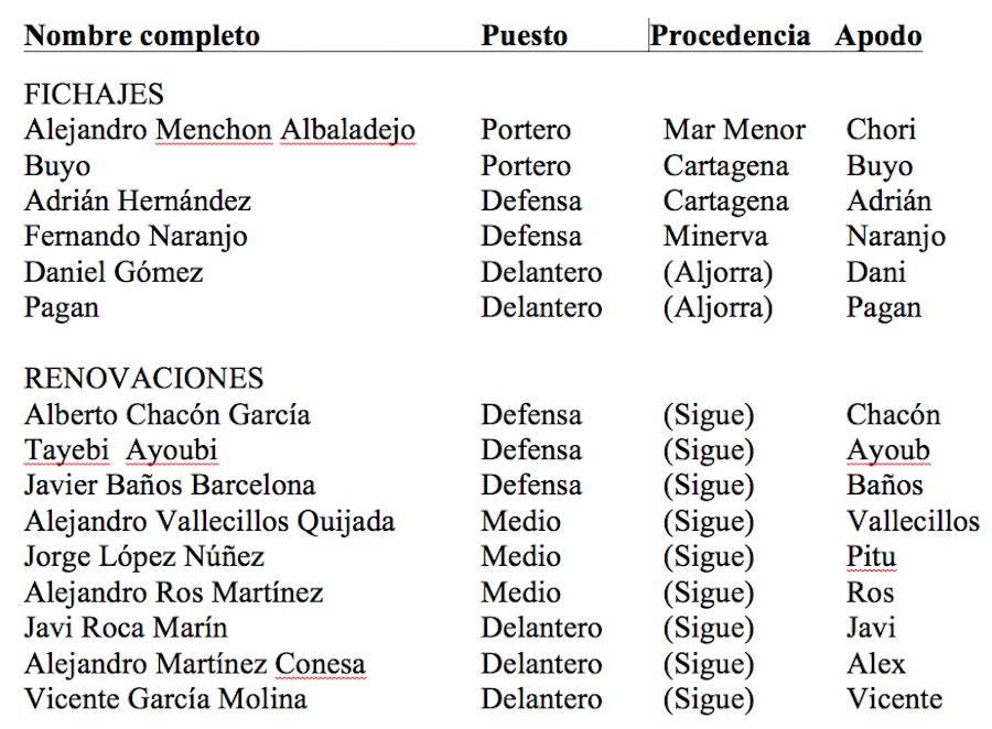 El club que preside José Ángel Pellicer ha renovado al entrenador, Julio César Espinosa, y ha comenzado la fase de renovaciones y fichajes. En la imagen se observa al técnico con Adrián Hernández, fichaje procedente del Cartagena FC.