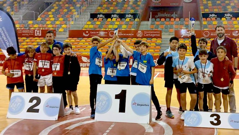 El colegio algareño fue el triunfador en chicos en la jornada de la fase municipal de esta actividad del deporte escolar que, en categoría alevín, tuvo como marco el Palacio de Deportes de Cartagena con la participación de 47 centros educativos.