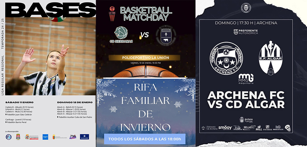 Vuelven las competiciones deportivas tras el descanso navideño, con excepción del FC Cartagena de la Superliga Femenina 2 que aún estará una semana más inactivo. Sí hay compromisos para los equipos de la cantera del Surmenor, además del EF Algar en fútbol. También tiene partido esta tarde el CB Sierramar de baloncesto. Fuera del deporte, rifa familiar en Los Urrutias el sábado por la tarde.