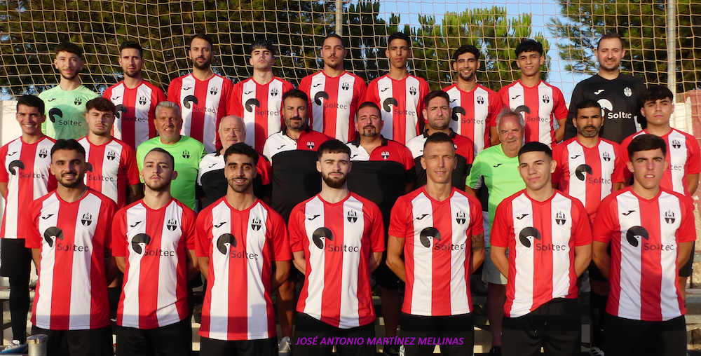 El CD Algar comienza hoy su nueva temporada enfrentándose a la Unión Molinense B, en el campo Sánchez Cánovas de Molina de Segura, a partir de la ocho de la tarde. En la imagen, la foto oficial de la plantilla rojiblanca 24/25.