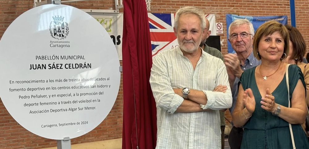 Juan Sáez Celdrán ha recibido un más que merecido homenaje esta tarde con la nominación del recinto polideportivo de El Algar en gratitud por las décadas que lleva potenciando el deporte entre los jóvenes desde su faceta como docente en centros escolares como siendo fundador y entrenador de la AD Algar Surmenor.