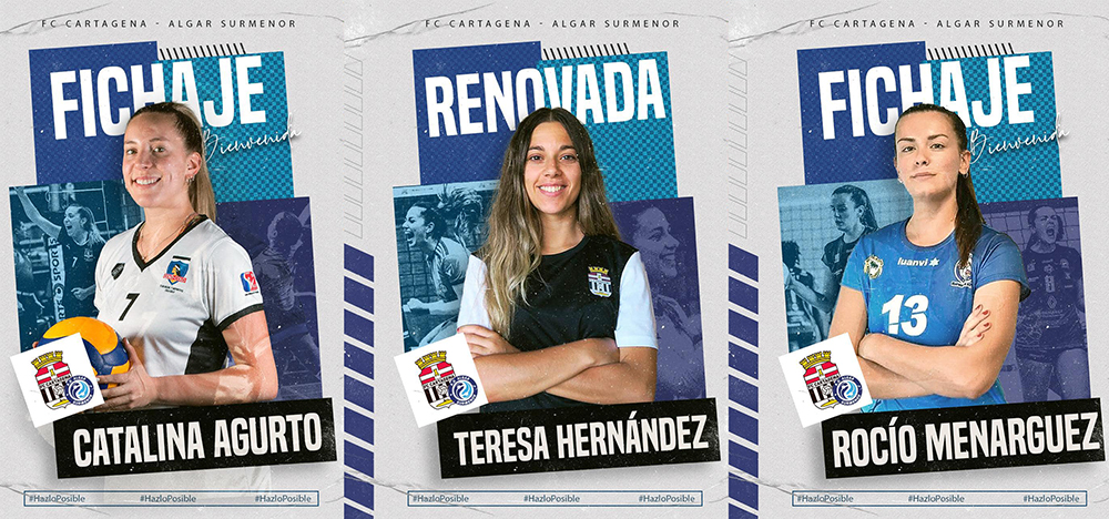 La llegada de Catalina Agurto, el regreso de Rocío Menárguez y la continuidad de Teresa Hernández se suman a Cecilia Thon y Geneva Jones en la configuración de la nueva plantilla del FC Cartagena de El Algar de voleibol femenino.