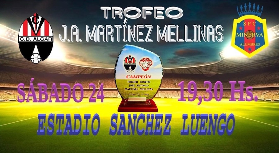 El CD Algar, de Preferente Autonómica, y el Minerva SFC de Alumbres, que milita en Tercera RFEF, disputarán este próximo sábado, a las 19.30 horas, la primera edición de un torneo que rinde tributo a la labor llevada a cabo hacia el club rojiblanco y hacia el pueblo algareño por José Antonio Martínez Mellinas.