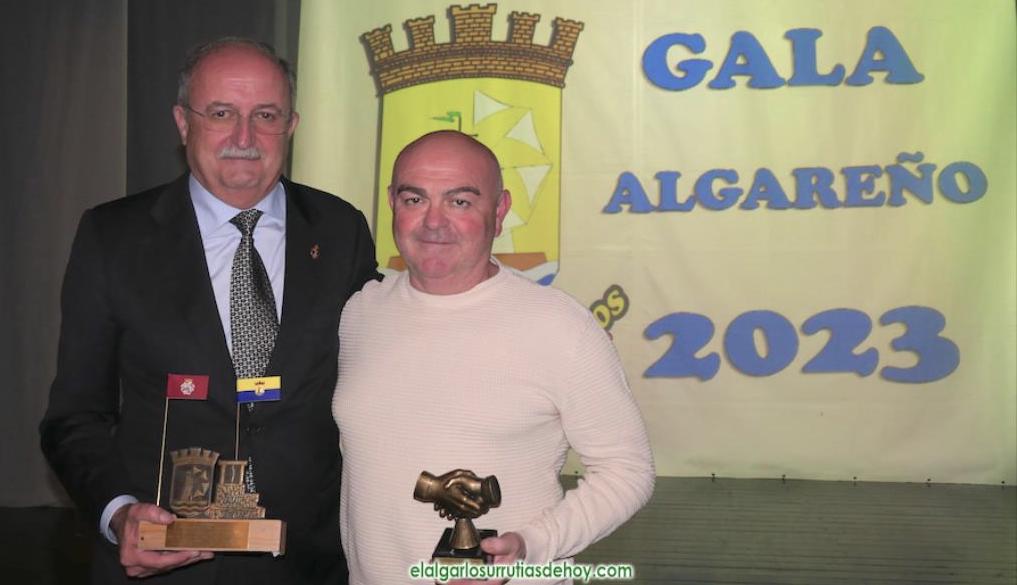 El empresario hostelero y presidente del club de colombicultura, también estaba vinculado a una entidad rojiblanca en la que se convierte en su décimo noveno presidente en la historia. Entre sus objetivos están, además de planificar un equipo que regresar a la Tercera RFEF, mejorar las instalaciones y potenciar el fútbol base. En la foto se le observa con Martínez Pagán en la última edición de la 'gala 'Algareño del año'.