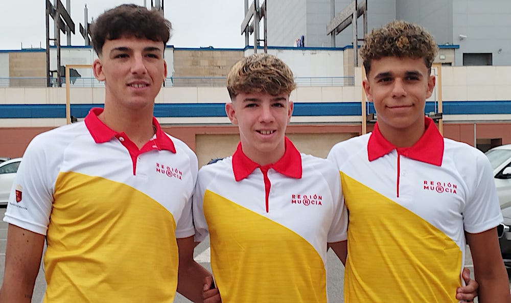 Hugo Martínez Zamora, Salvador Martínez Zamora y Héctor Nieto Martínez disputan este fin de semanal el Campeonato de España de selecciones autonómicas de triatlón supersprint con la Región de Murcia, que se celebra en Mérida, siendo el río Guadiana el que acoge la competición de natación.