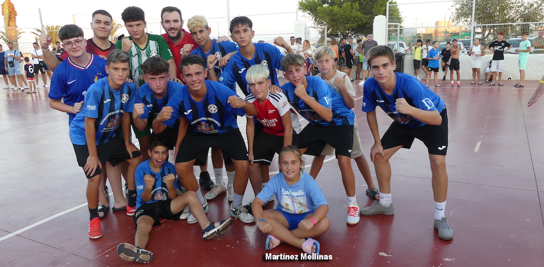 El campeonato celebrado entre el 28 de julio y el 10 de agosto en la pista deportiva de Los Urrutias ha llegado a su final con éxito de participación en las categorías de cadete, infantil, alevín, benjamín y prebenjamín, además de buen ambiente en cada jornada. En la foto posan 'Los pionetas', uno de los equipos ganadores.
