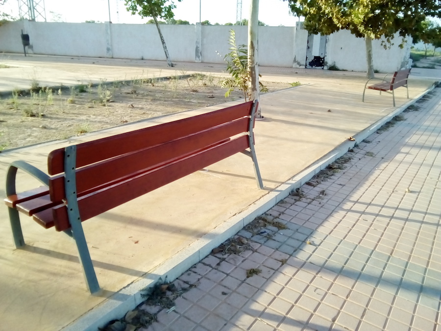 La Asociación de Vecinos de El Algar está pintando los bancos de todo el pueblo en sus diferentes barrios.