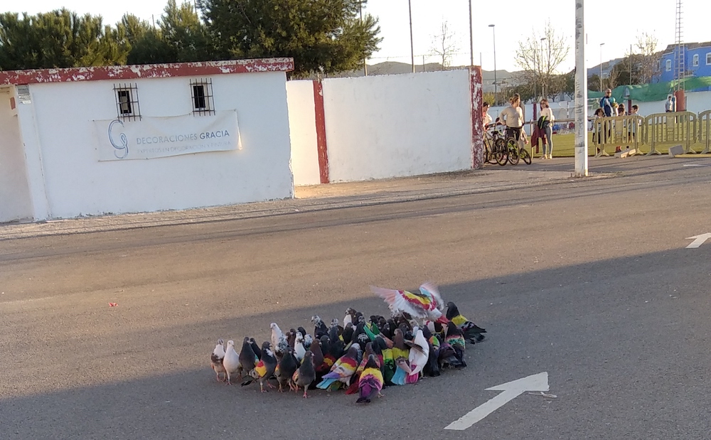 Estas palomas tuvieron que hacer un aterrizaje forzoso en la instalaciones del complejo deportivo del Sanchez Luengo de El Algar debido a que ya no podían con el acoso de tantos ‘pretendientes’ sobre sus alas.
