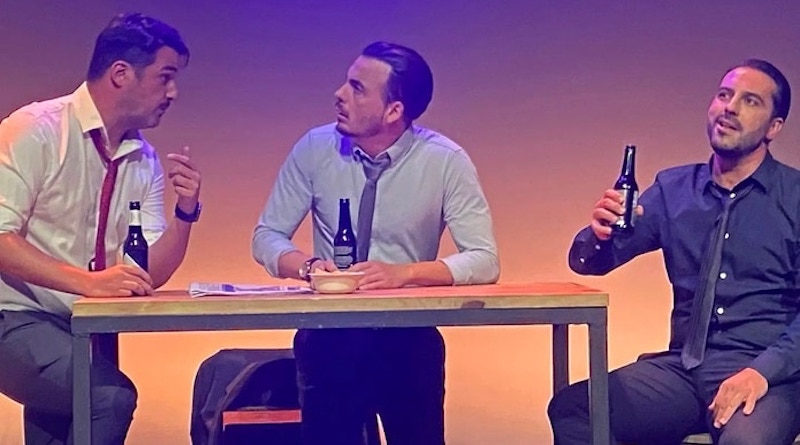 Fredo, Rober y Dani, empleados de una multinacional, se reúnen cada tarde en el bar de moda al que acuden oficinistas de la zona financiera con sus trajes elegantes y sus afiladas lenguas. Entre cerveza y cerveza, Fredo y Dani le cuentan a Rober un proyecto vital, una idea que cambiará sus vidas y la de muchos de los que los rodean, la opción de salir de los grises despachos en los que se agostan. Pero esta noche algo es diferente. Esta noche todo puede cambiar para siempre en sus vidas, y ponerles en un sitio mucho mejor o mucho peor. Todo depende de ellos. Es la sipnosis de la obra que se representa el sábado en el teatro circo de El Algar.
