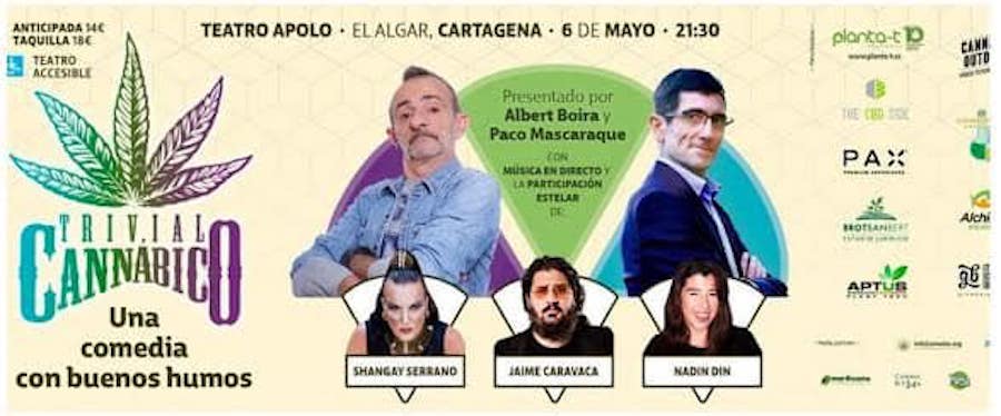 Trivial Cannábico. Divertida, lúdica, entretenida, terapéutica… Con la pregunta “¿Cuánto sabes sobre cannabis?” como hilo conductor, el espectáculo encadena pruebas y preguntas con monólogos sobre la marihuana. Trivial Cannábico es un show multimedia que ofrece una hora y media de risas, improvisación y sorteos que incluyen la participación del público en algunas de las pruebas.