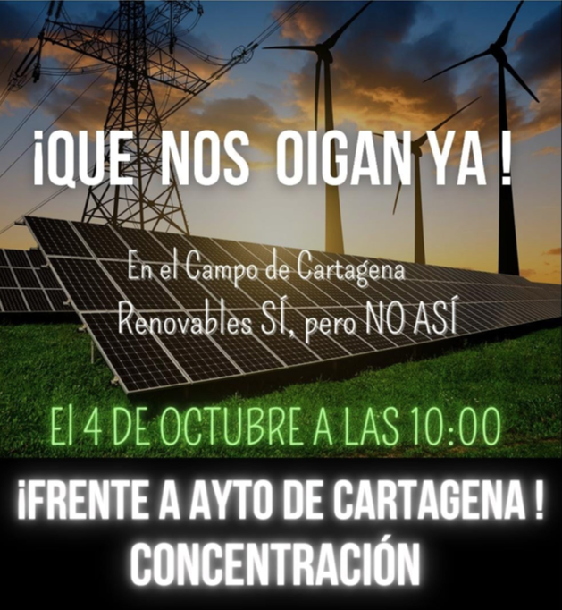 Decimos sí a las energías renovables, pero NO así. Por nuestra parte, no desistiremos y lucharemos con este intento de imponer unas instalaciones que deben ser beneficiosas y de utilidad pública y que no se pueden convertir en episodios nefastos e irreversibles. La única zona y paisaje a defender en el término cartagenero no es solamente la zona oeste, sino otras, sobre todo el entorno del Mar Menor y su cuenca vertiente.