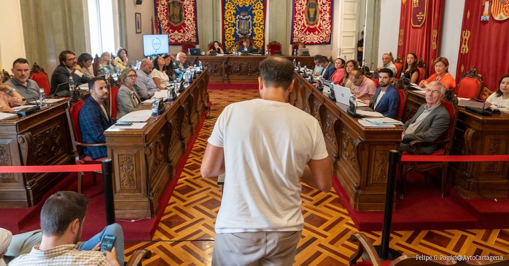 En la foto superior se observa al integrante de la Liga Rural de Campo de Cartagena que habló en la sesión de la corporación municipal.
