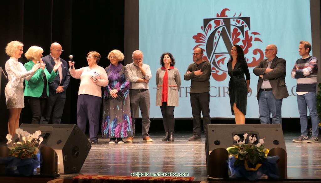 “Por hacer realidad el museo del Teatro Apolo, por la gestión del mismo y del propio teatro, así como por su promoción a nivel nacional” fueron los méritos para el premio a la Asociación Socio-Cultural Teatro Circo Apolo, siendo la presidenta de la Junta Vecinal Municipal, Francisca Martínez Sotomayor, la que entregó el trofeo. La presidenta de la asociación, Pilar Hernández, resaltó que el teatro “está hecho a medida de los algareños” y apuntó que cuenta con más socios de fuera de El Algar que del mismo pueblo. Cabe recordar que este histórico edificio cuyo origen se remonta a 1905 es propiedad de la asociación de vecinos.