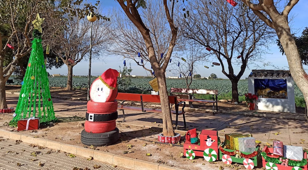 Los vecinos de este barrio de El Algar comenzaron en 2017 a decorar de Navidad, con elementos reciclados, su entorno, siendo uno de los atractivos del pueblo en estas fechas.