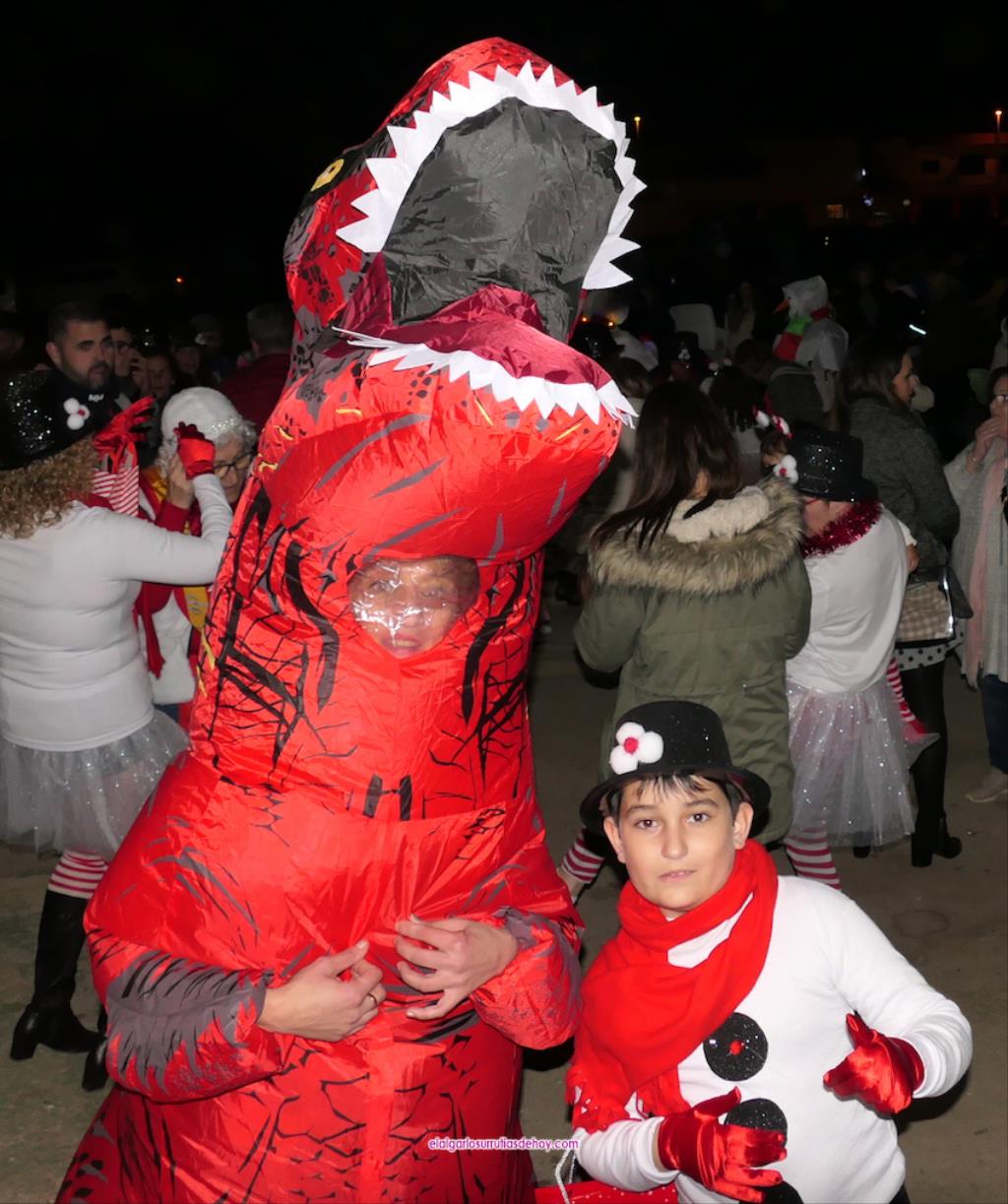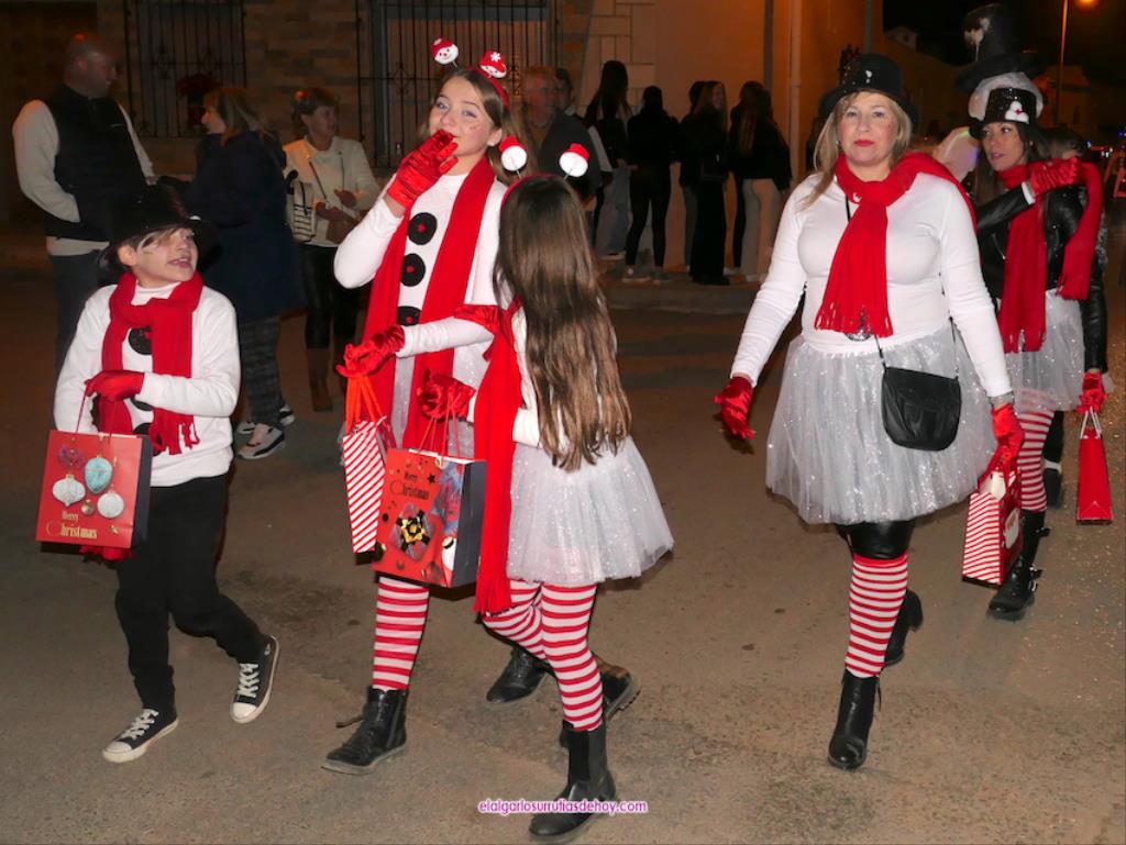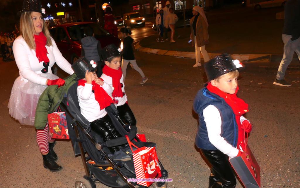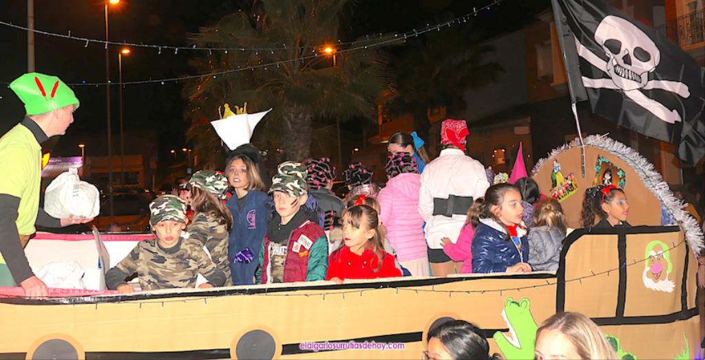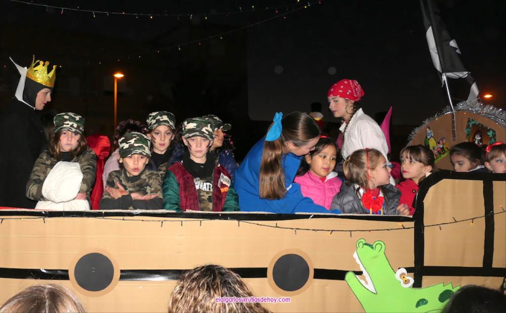 Numerosos vecinos acudieron a contemplar el paso de los Magos de Oriente, que esta vez cerraban una comitiva muy numerosa. En los días previos, los organizadores invitaron a sumarse a vecinos y colectivos, siendo la respuesta estupenda con seis grupos o comparsas (Hondonada, Desencajados, Meteorito, Doble D…) con atuendos variados y vistosos, entre los que figuraba un ‘nacimiento rodante’ y un barco de piratas, además de muñecos de nieve y un dinosaurio, siendo la música navideña y carnavalera la que acompañaba los bailes.