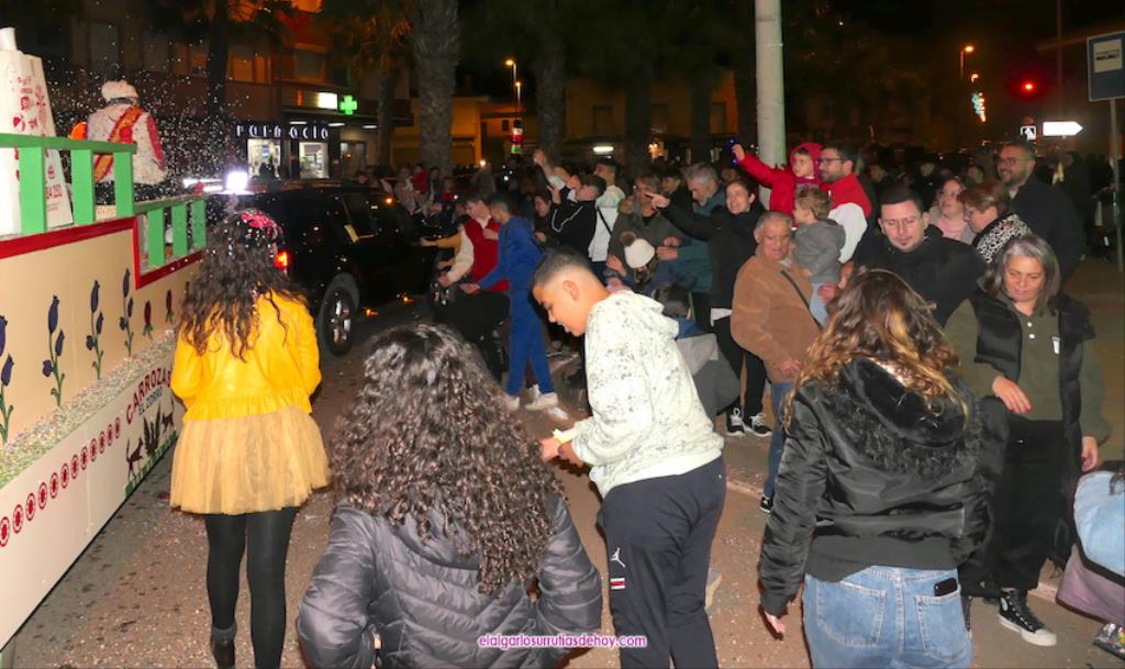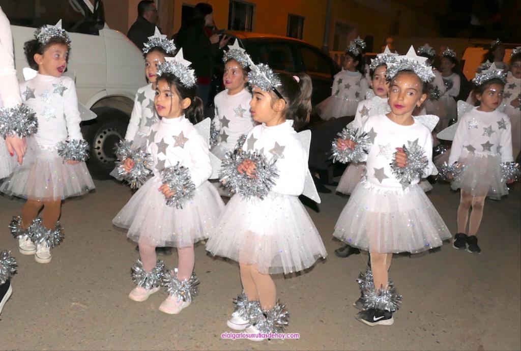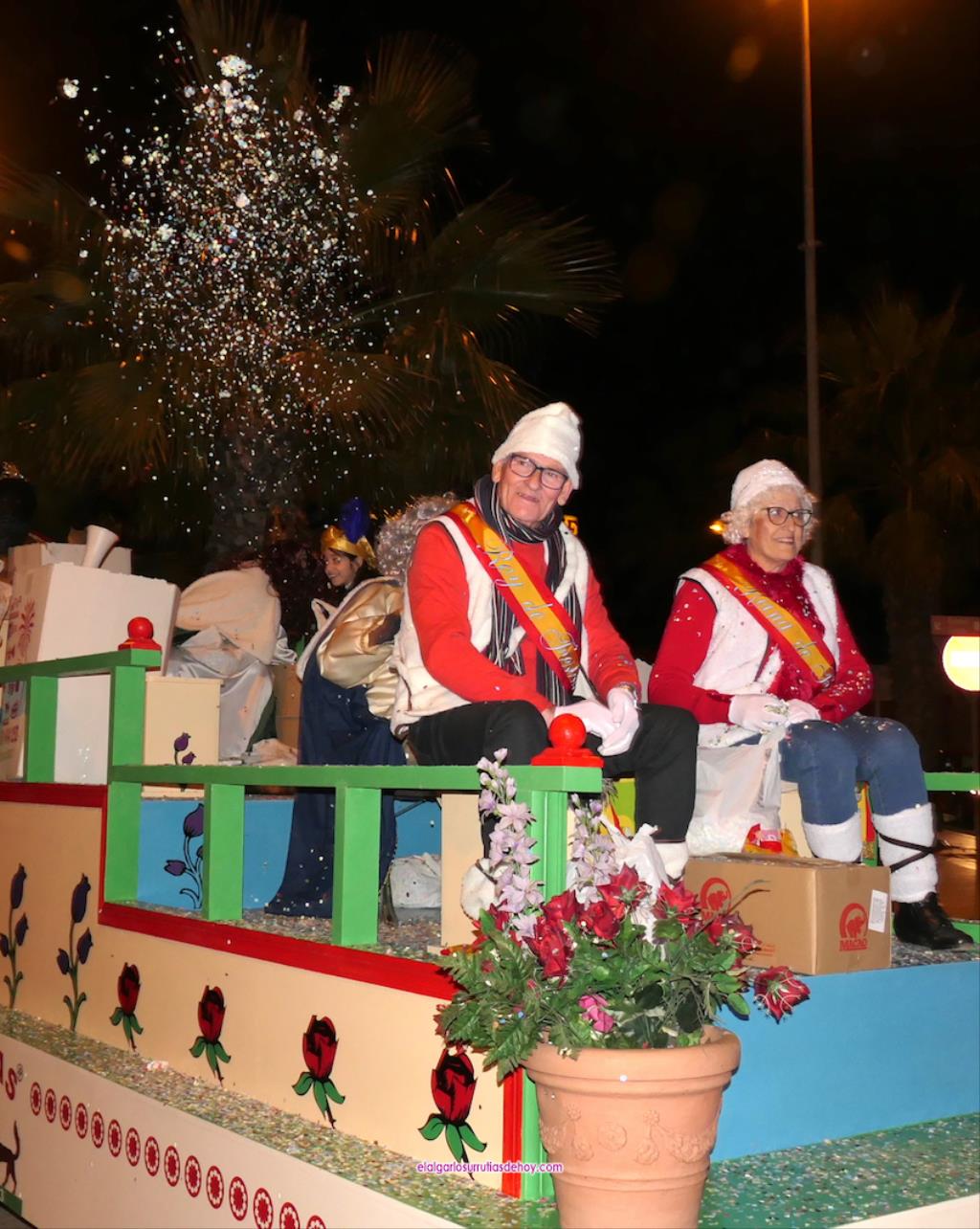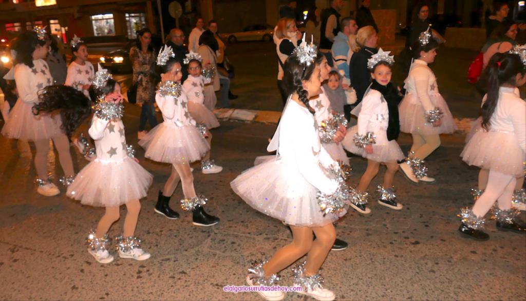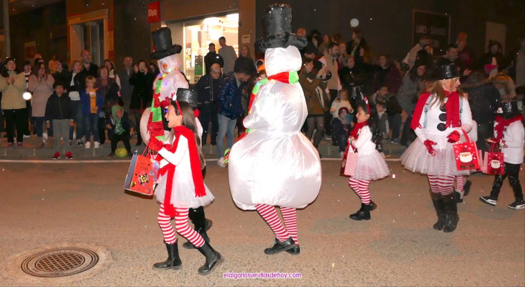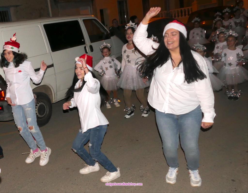 Numerosos vecinos acudieron a contemplar el paso de los Magos de Oriente, que esta vez cerraban una comitiva muy numerosa. En los días previos, los organizadores invitaron a sumarse a vecinos y colectivos, siendo la respuesta estupenda con seis grupos o comparsas (Hondonada, Desencajados, Meteorito, Doble D…) con atuendos variados y vistosos, entre los que figuraba un ‘nacimiento rodante’ y un barco de piratas, además de muñecos de nieve y un dinosaurio, siendo la música navideña y carnavalera la que acompañaba los bailes.