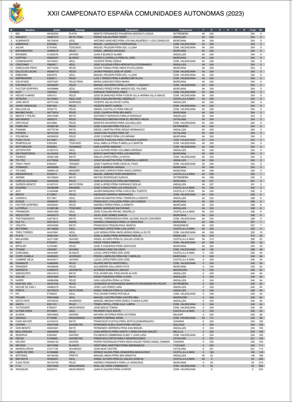 Continúa la celebración del XXII Campeonato de España de comunidad autónomas de palomos deportivos, que comenzó el día 2 y concluye el 22 de este mes. Tras finalizar la primera prueba, ayer arrancó la segunda.