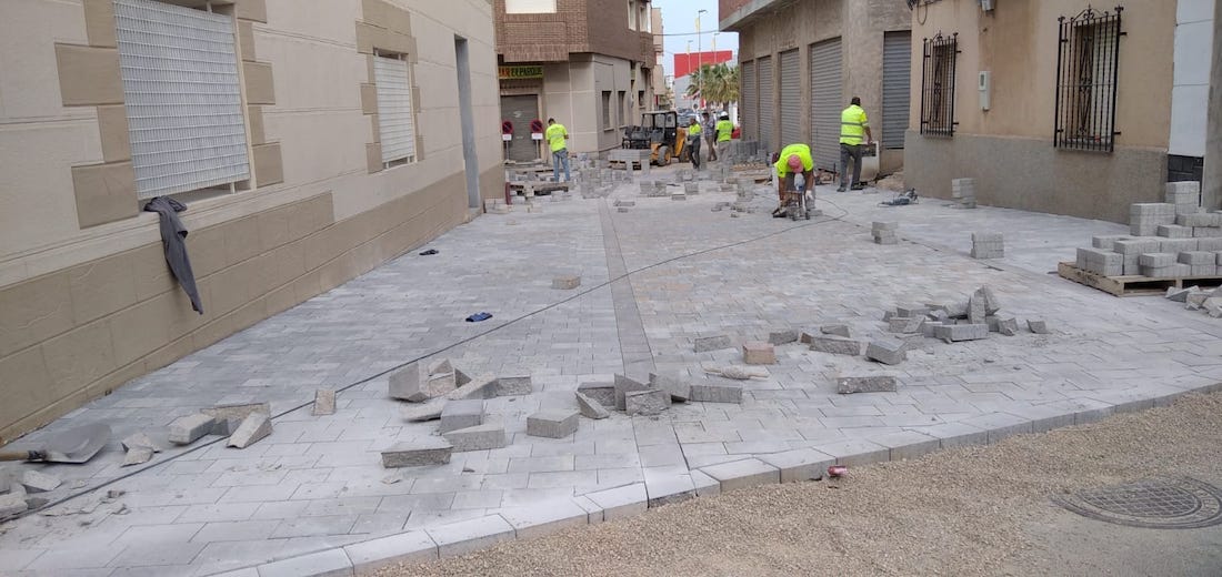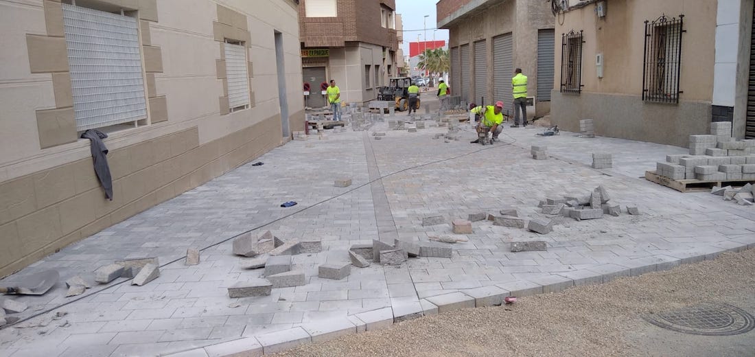Las obras que se están llevando a cabo en El Algar en esta época previa a la cita con las urnas para los comicios municipales y autonómicos están mejorando el pueblo, como se observa en esta vía adoquinada.