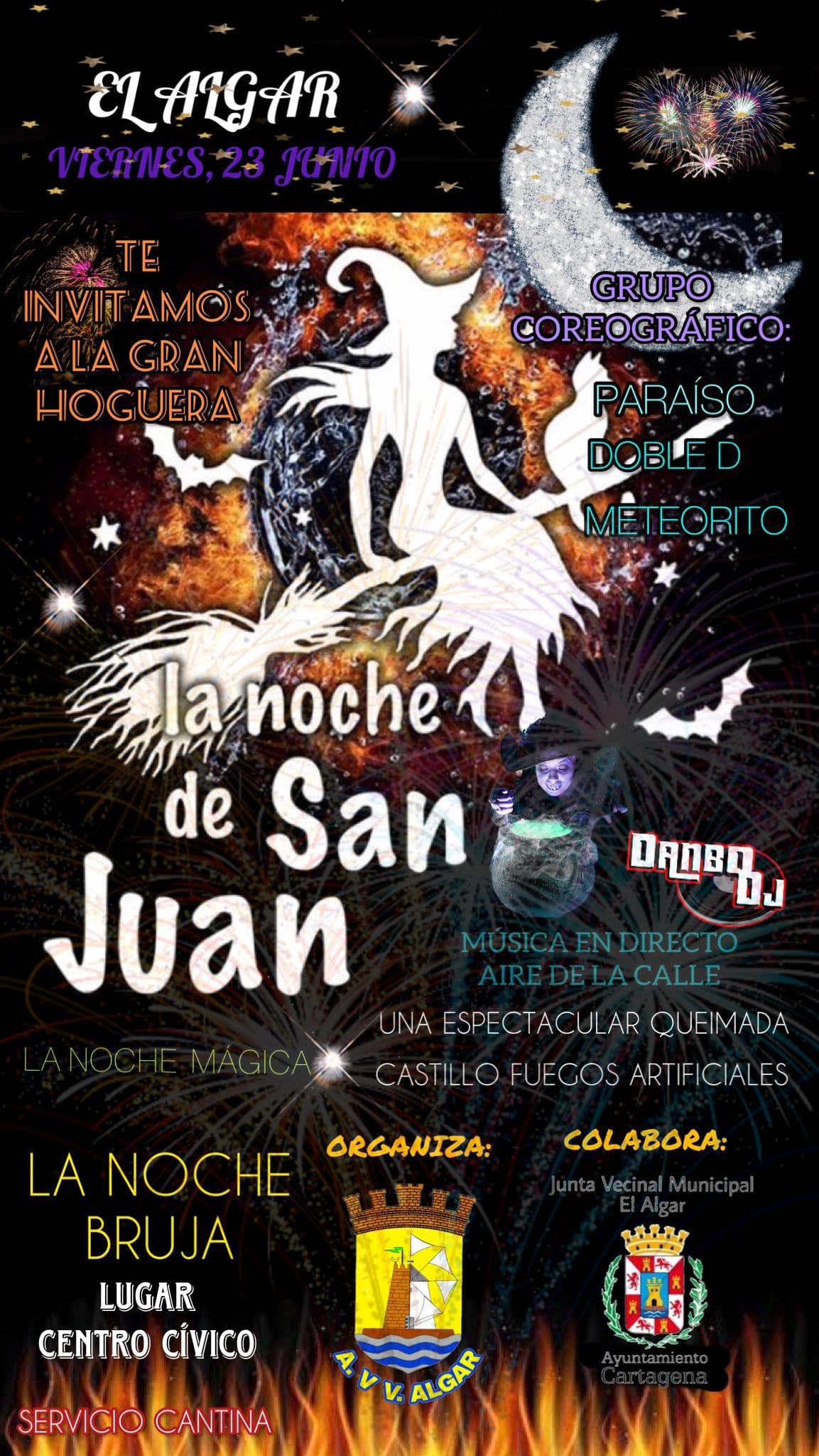 La asociación de vecinos, por vez primera y con la colaboración de la Junta Vecinal Municipal, llena de alicientes la quema de la popular hogareta con la participación de Paraíso, Doble D, Meteorito, Danbo DJ, Aires de la calle..., además de queimada y fuegos de artificio.