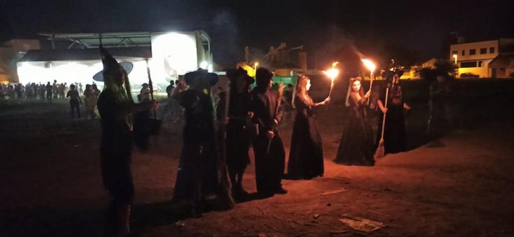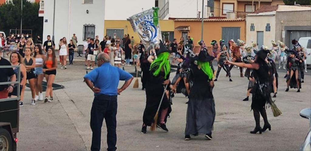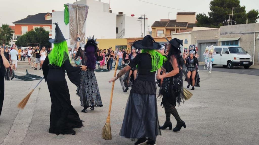 La noche de San Juan arrancó todavía con luz solar y con un desfile anunciador por el pueblo con participación del grupo coreográfico 'Paraíso', del Carnaval de Cartagena, y del grupo de animadas brujitas. Salieron de 'la plaza de las lentejas' y llegaron a la explanada del centro cívico, preparada con sillas para acoger a los asistentes y con sucesión de música a través de Danjo DJ, de la banda 'Doble D' y del grupo 'Aires de la calle', además de la actuación del grupo 'Meteorito'. Luego llegó el conjuro con la queimada y la recogida de deseos, con hechizo para que se hagan realidad.