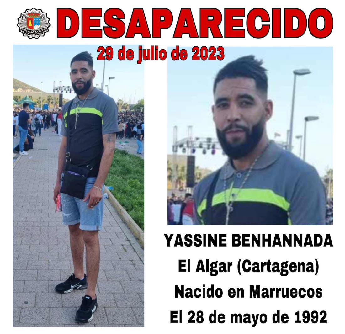 La Policía Local de La Unión difunde el aviso de que se busca a Yassine Benhannada, de quien no se tienen noticias desde el pasado 29 de julio. Nacido en Marruecos hace 31 años, es vecino de El Algar.