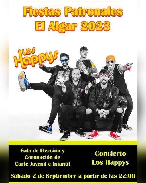 22:00h. Gala de Elección y Coronación de las Cortes Infantil y Juvenil de las Fiestas. Amenizado por: LOS HAPPYS
