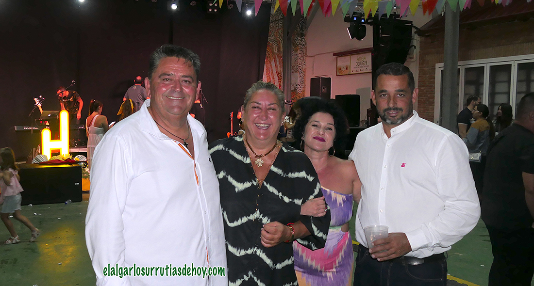 La fotografía muestra a Ángel, Juani, Carol y Fran anoche en el interior del centro cívico durante la gala de apertura de los festejos patronales de El Algar.