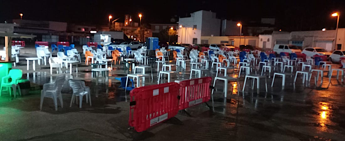 No está lloviendo tanto como se anunciaba, pero sí bastante como para frustrar bastantes planes, como la forma de empezar las Fiestas 2023 de El Algar. El mercado y la cena medieval han sido suspendidos y no se pudo celebrar la gala de elección y proclamación de la corte de honor en la explanada (con mesas para cenar el que quisiese), como estaba previsto, pero en este pueblo se buscan soluciones y sólo hay rendición cuando ya es inevitable. La comisión de fiestas estuvo por la tarde esperando ‘el milagro’, pero no se produjo, por lo que activó un plan B, que fue trasladar el evento al interior del centro cívico, bajo techado, para lo que se trabajó a tope y contrarreloj. El resultado fue que hubo gala, que hubo pregón de apertura, que hay reinas y que ya han comenzado las fiestas de El Algar.