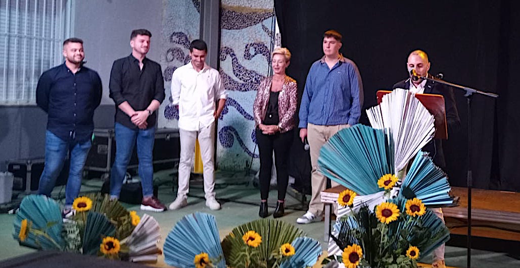 Estuvo acompañado en su oratoria por varios voluntarios de una institución que ya ha sido protagonista en escasos años de dos de los mayores eventos de su tierra, pues el director fue pregonero en marzo de 2020 de la Semana Santa y ahora lo ha sido de las fiestas patronales, lo que supone que, una vez más, se valora y se resalta la gran labor que llevan a cabo.