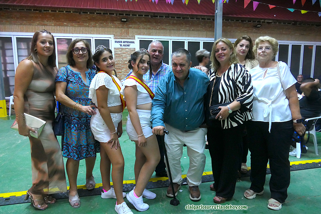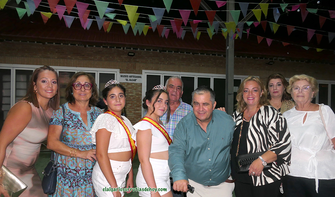 Las reinas de la elegancia (Natalia García) y de la alegría (Ariadna Angosto) de las Fiestas de El Algar 2023 posan con sus familiares tras la proclamación de la corte de honor.
