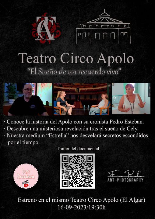 Gente Xtraordinaria, el canal de YouTube que dirige Estrella Díaz, ha investigado los fe-nómenos extraños que se registran en el Teatro Circo Apolo de El Algar, una sala emble-mática en la localidad que se inauguró en 1907 en base a un proyecto del arquitecto Pe-dro Cerdán.