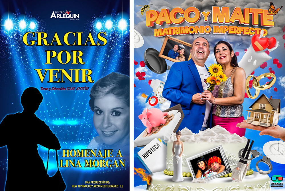 El teatro circo de El Algar trae este viernes un homenaje a Lina Morgan con la comedia musical 'Gracias por venir' y al día siguiente tendrá sobre su escenario a los humoristas Paco y Maite  con 'Matrimonio imperfecto'. En las fotos superiores, una escena de la obra y otra de una visita a Cartagena de la pareja cordobesa.