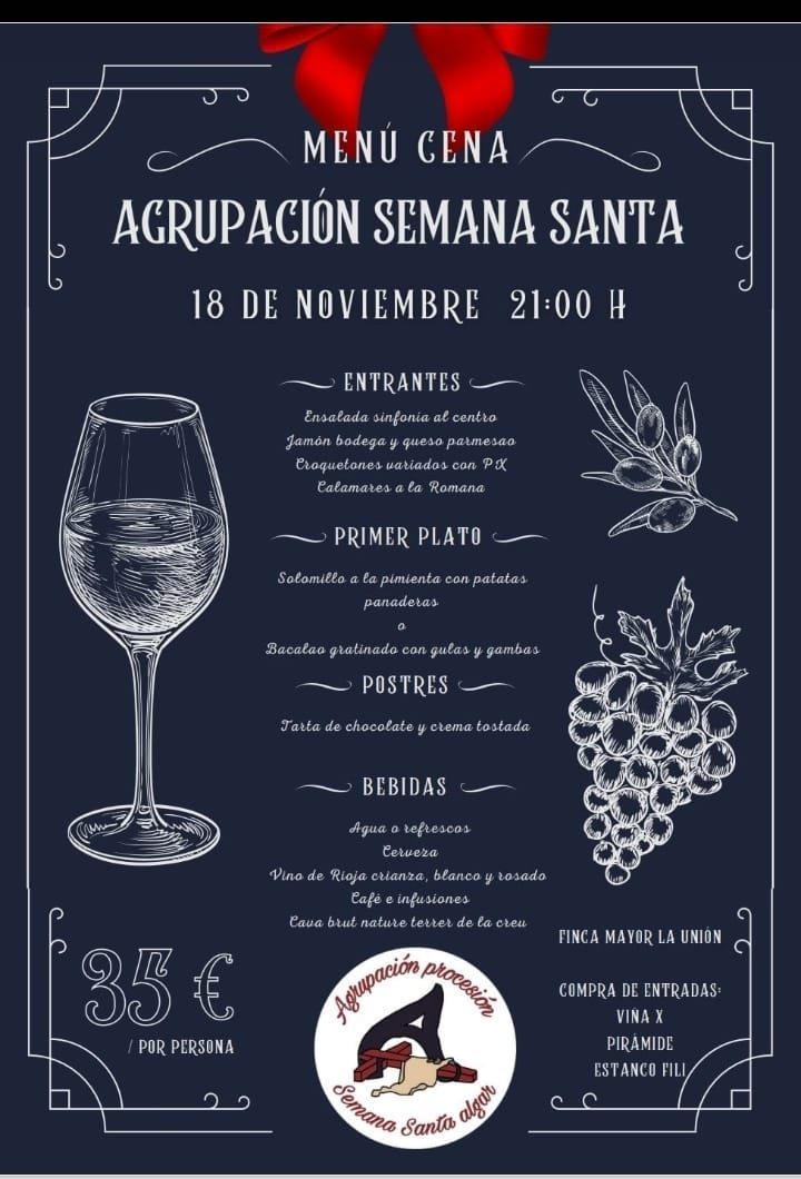 La Agrupación de la procesión de la Semana Santa de El Algar ha fijado para el tercer sábado del próximo mes su cena, en la que se entregarán las distinciones y menciones especiales a los procesionistas.