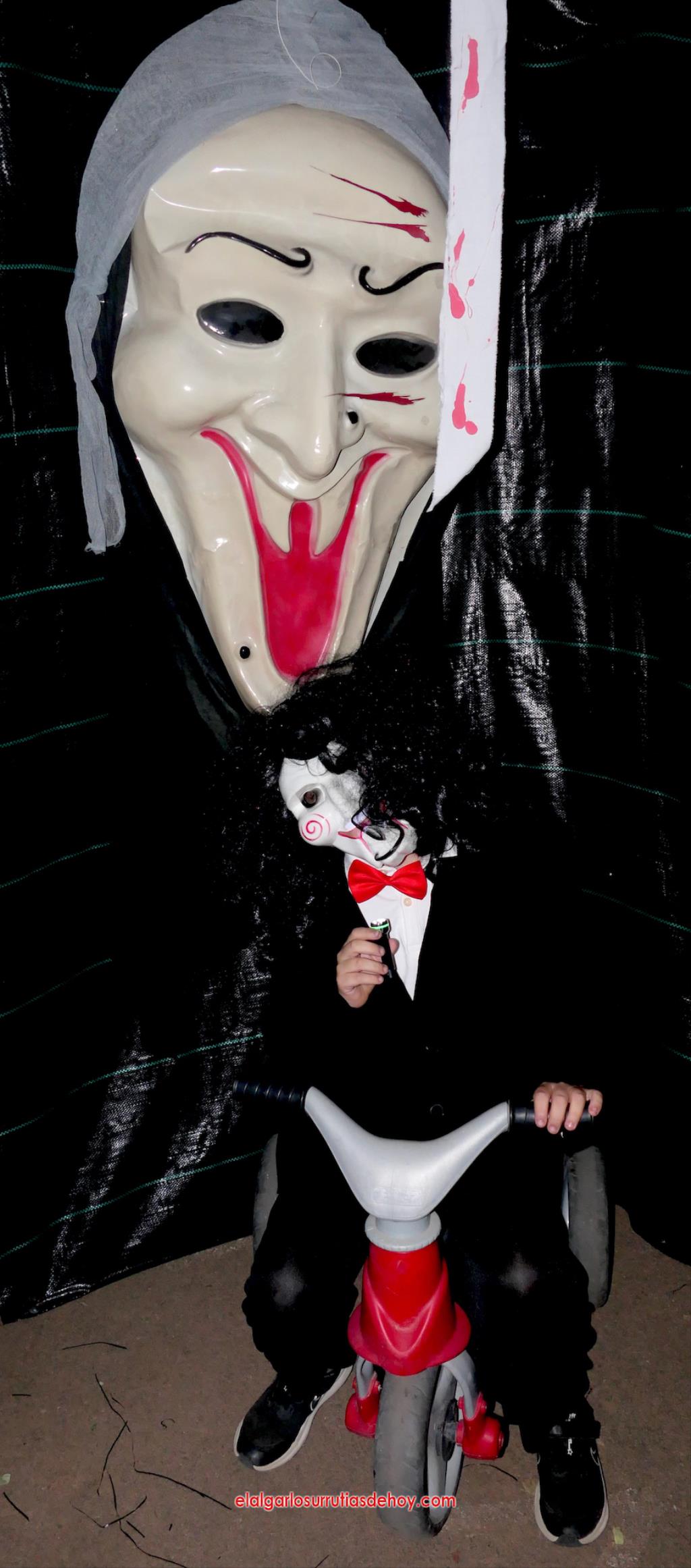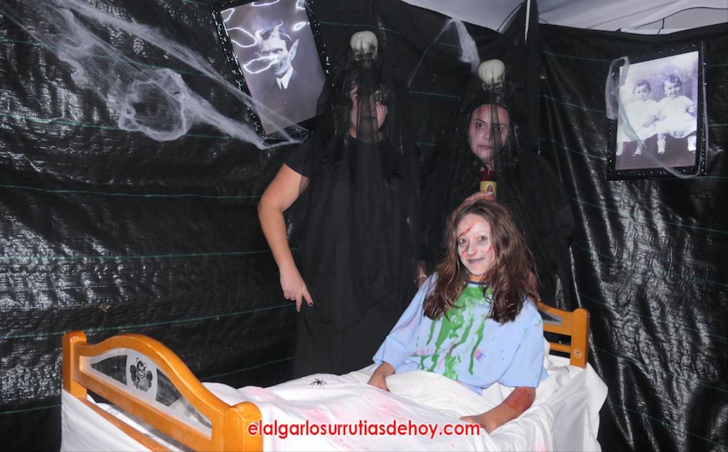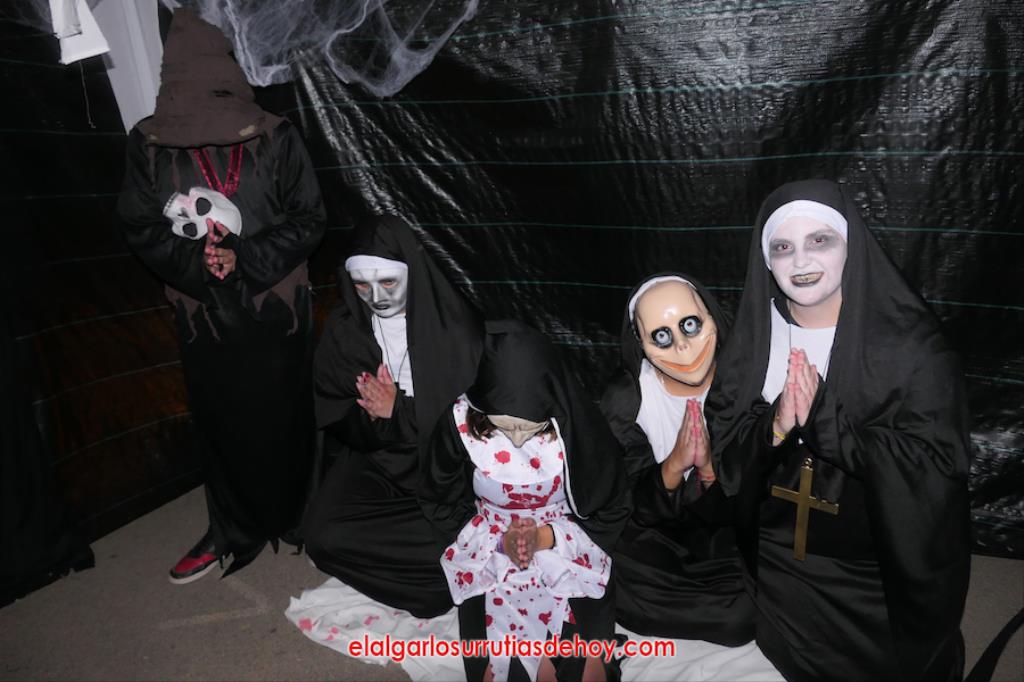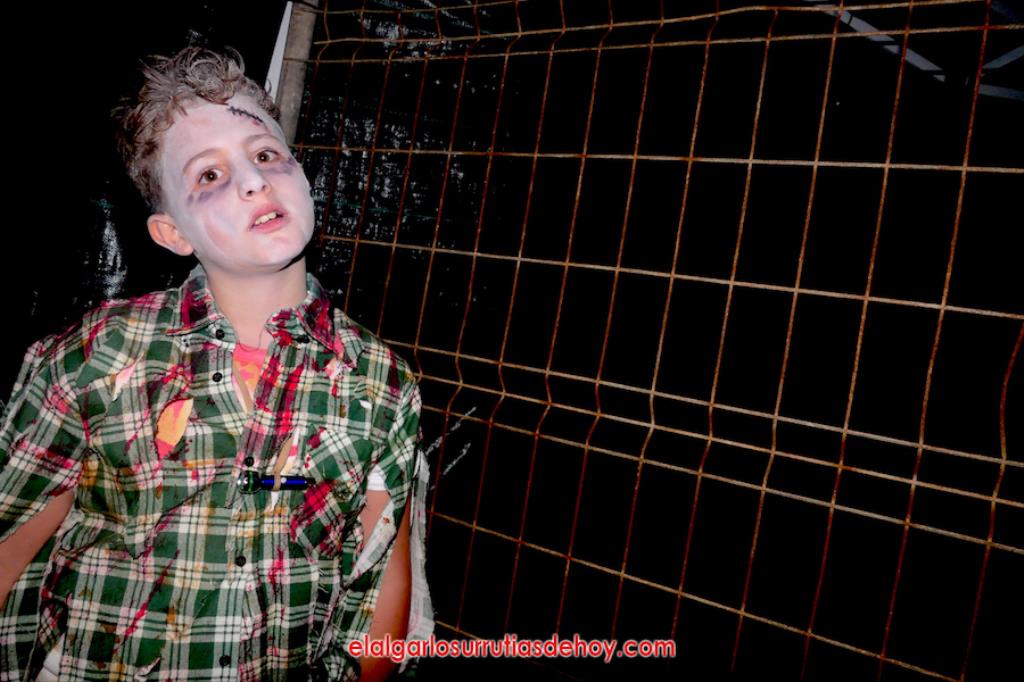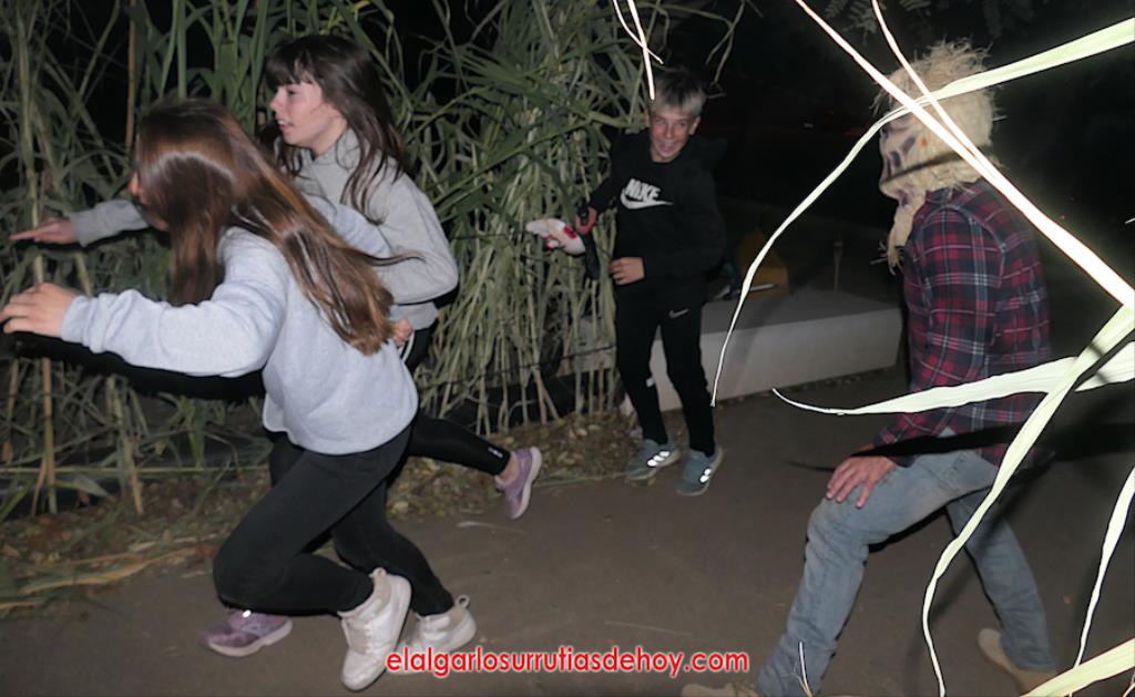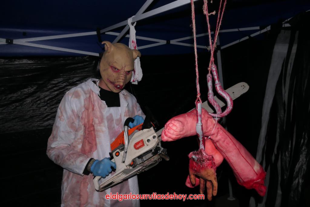 El local social multiusos del pueblo algareño se ha convertido estos días en el epicentro del terror merced a un recorrido que combina espacios cerrados con tramos a noche abierta en la que siniestros personajes surgen para asustar a los que se atreven a recorrerlo.