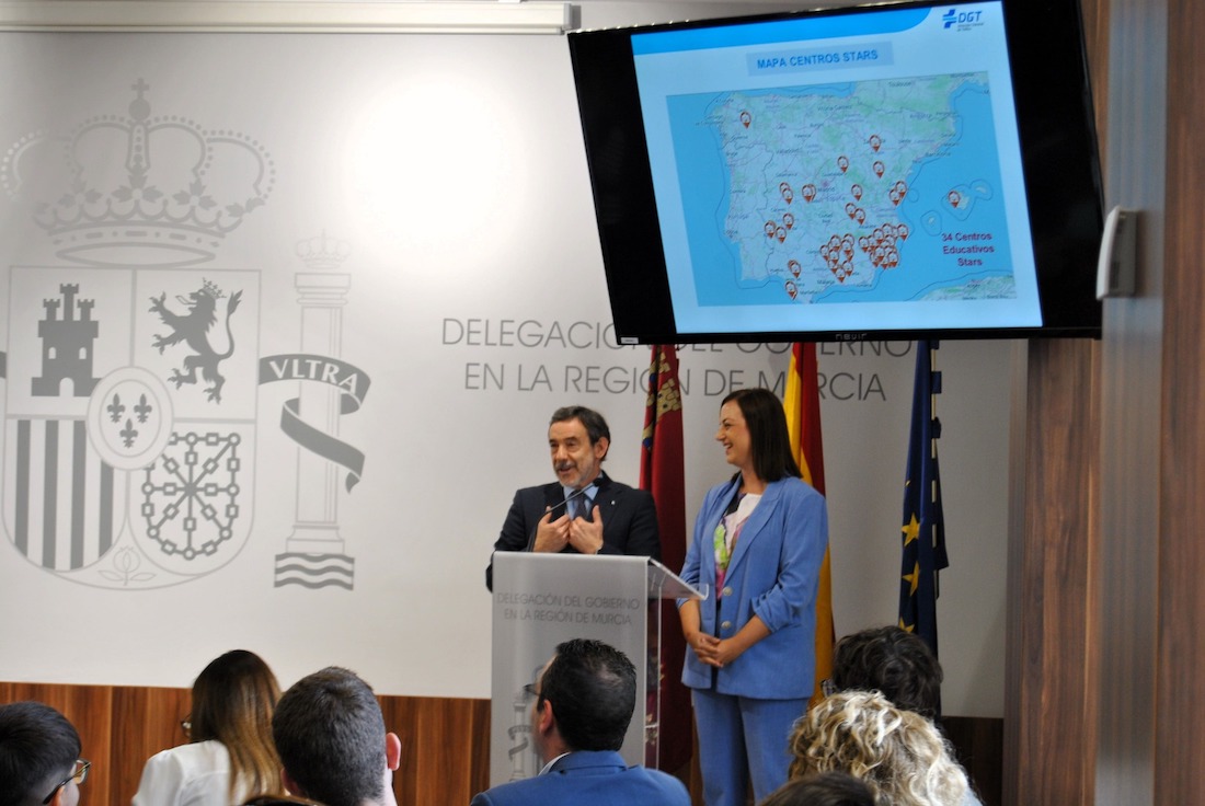 El delegado del Gobierno en la Región, Francisco Jiménez, y la jefa Provincial de Tráfico, Virginia Jerez, han entregado las acreditaciones 'Stars' de la Dirección General de Tráfico a trece centros escolares autonómicos, de los 34 participantes, por fomentar la movilidad segura y sostenible en los desplazamientos de los alumnos a las aulas, siendo el CEIP Virginia Pérez de El Algar (Cartagena) el destinatario de la distinción de oro por su destacada implicación en la promoción de cambios en las pautas de desplazamiento de su alumnado en esta movilidad, habiendo aumentado considerablemente la asistencia al centro de alumno sy familiares a pie o en bicicleta.