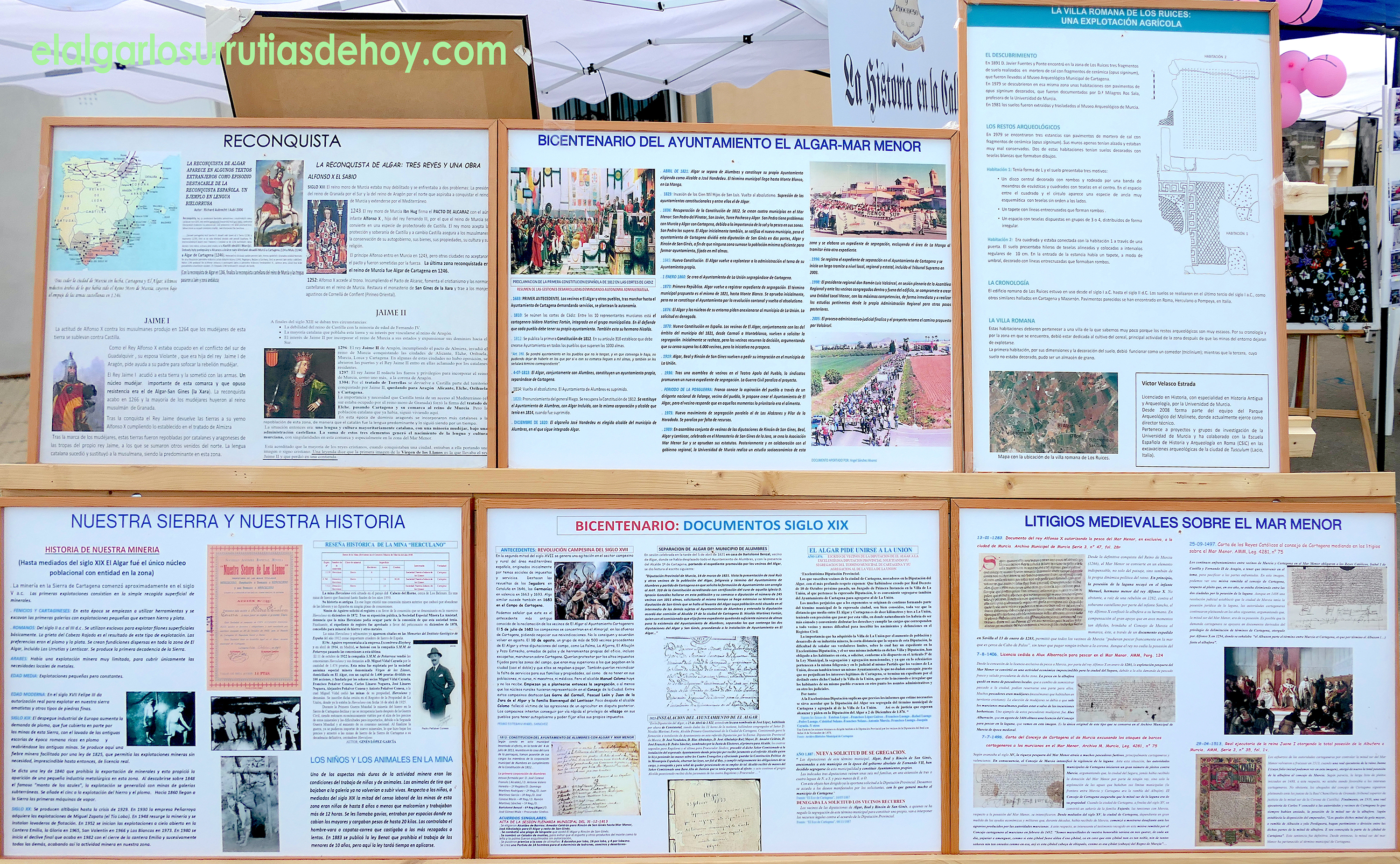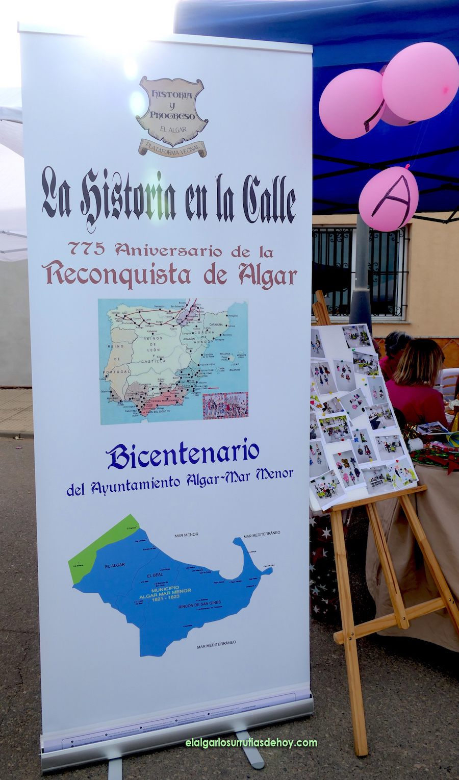 La 'VII Feria de las asociaciones' muestra el presente y el optimista futuro de El Algar, pero también ha tenido un espacio para el ayer con la 'Plataforma vecinal historia y progreso', que ha montado expositores que recuerdan que en el siglo XIII esta tierra fue la última reconquistada por Alfonso X El Sabio para el Reino de Murcia y que hace dos siglos, entre 1821 y 1823, El Algar fue el un municipio que abarcaba hasta Monteblanco, en La Manga.