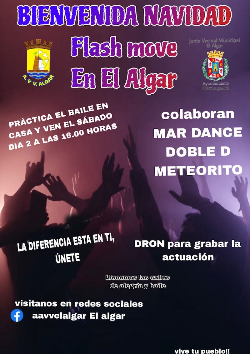 El Algar ha acogido esta tarde una original manera de dar la bienvenida a las entrañables y festivas fechas navideñas con un pasacalles de la asociación de cornetas y tambores ‘Virgen de los Llanos’ y un ‘flash movie’ llevado a cabo por los grupos coreográficos del pueblo en la vía pública.