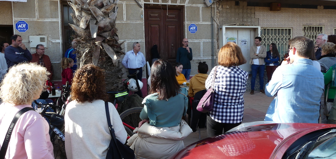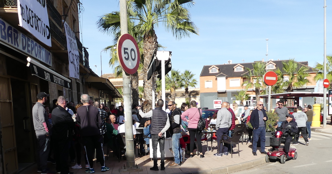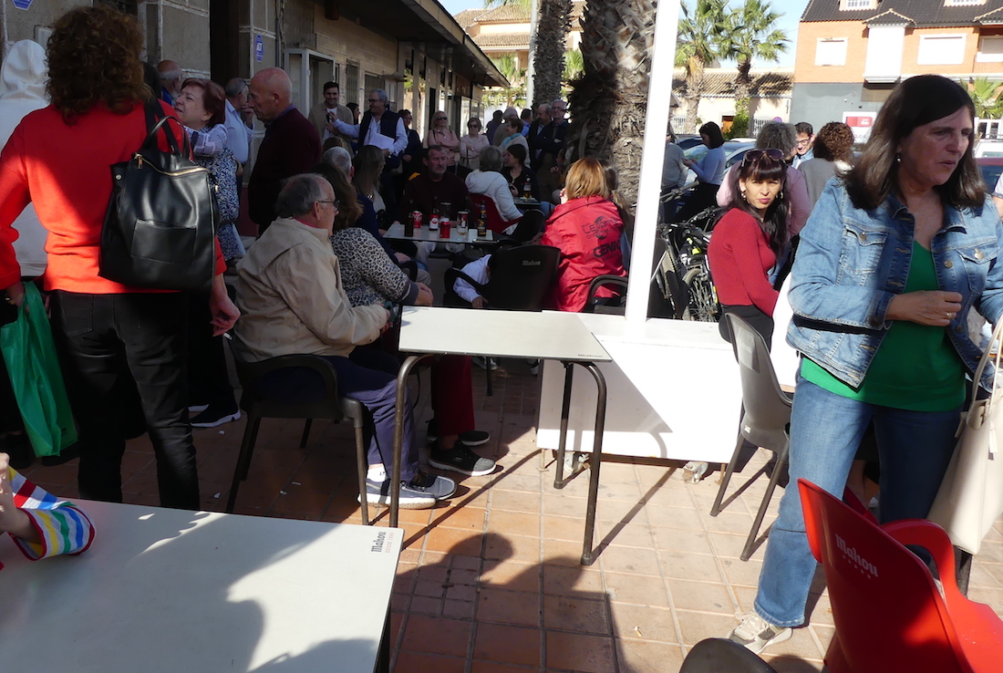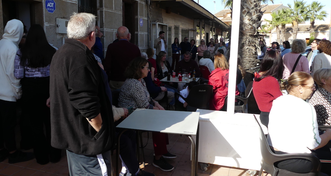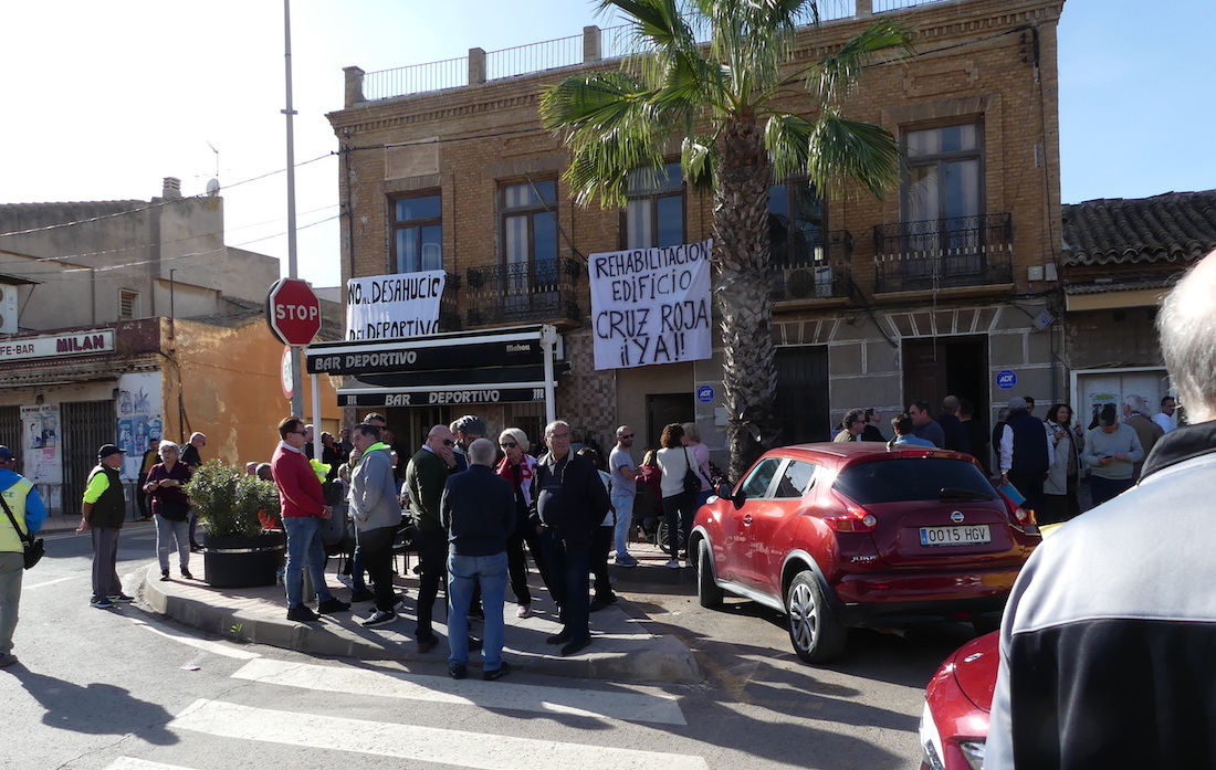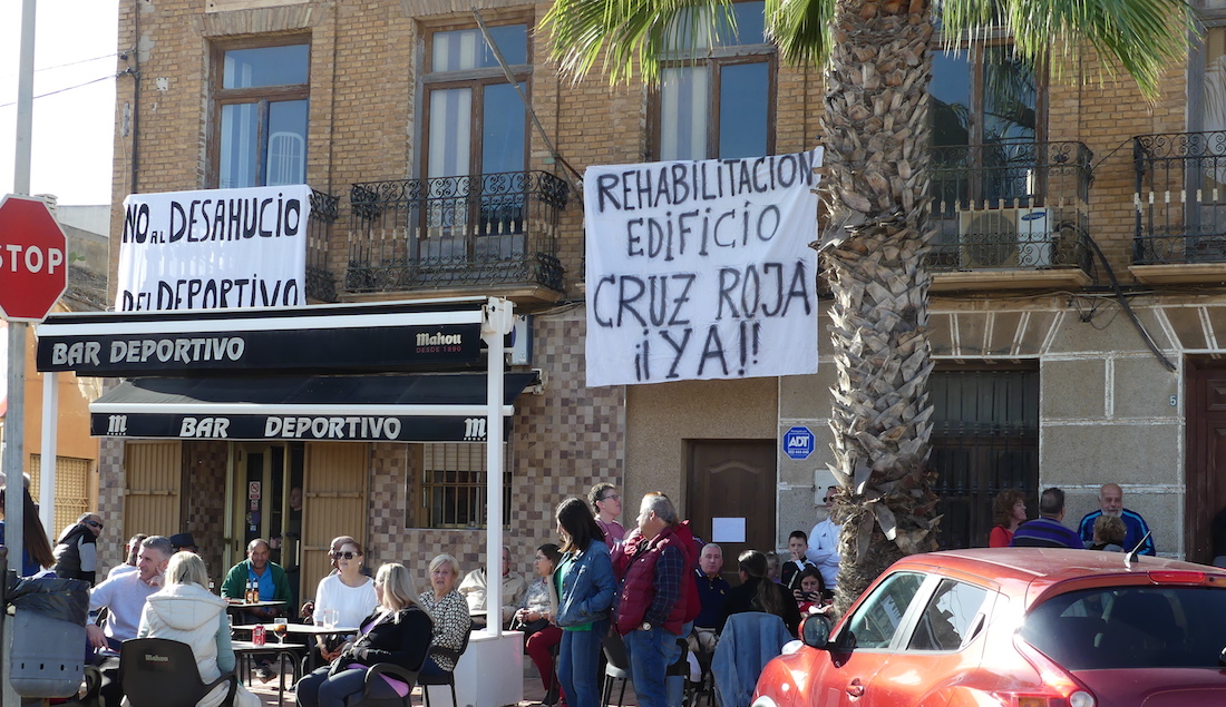 Varias decenas de personas se han concentrado esta mañana ante la fachada del local de la plaza del Hondo de El Algar para demandar a la propiedad, la Cruz Roja, la rehabilitación del histórico edificio y que en su planta baja siga el negocio hostelero.