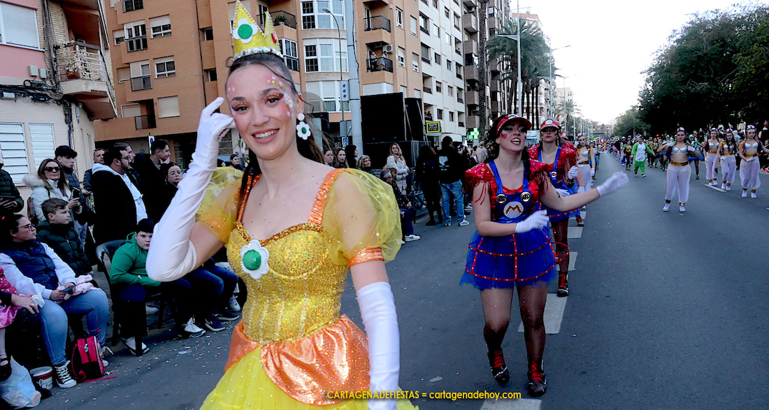 El grupo coreográfico de El Algar participó, un año más, en el gran pasacalles carnavalero de Cartagena, luciendo esta vez la temática del popular juego de Mario Bros y consiguiendo el premio a la creatividad.