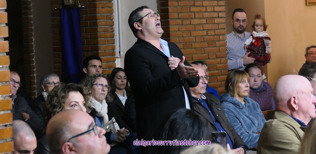 El acto tuvo varios capítulos, de los que la presentación del cartel oficial de este año, la elección de 'Hermana de honor' y el anuncio de relevo de la directiva tienen artículos propios en este periódico, siendo el epicentro de esta crónica el pregón ofrecido por Pedro García Martínez, quien preside la asociación de vecinos y es un procesionista activo, formando parte también del coro parroquial y del grupo de portapasos del Cristo Crucificado.
